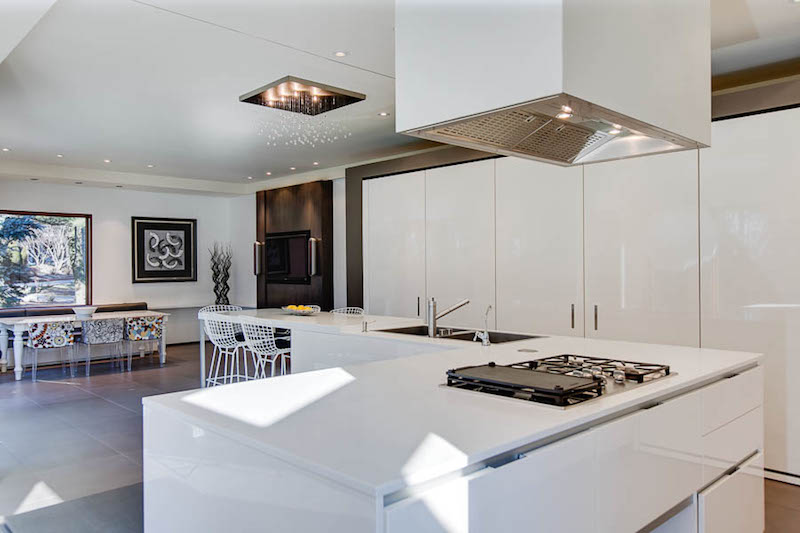 Accommodations include 6 bathrooms and 5 lavishly appointed bedrooms, but we should also mention the rooftop deck as well as the large garage that is able to house as many as 3 cars at once. Apart from its generous amount of indoor amenities such as fireplaces, flat screen TVs, large sofas, air conditioning systems and impressive lighting arrangements, the mansion also includes its own interior swimming pool. Another highlight is the kitchen itself, which boasts Italian imported “Boffi” cabinetry and appliances that are worth $200,000.