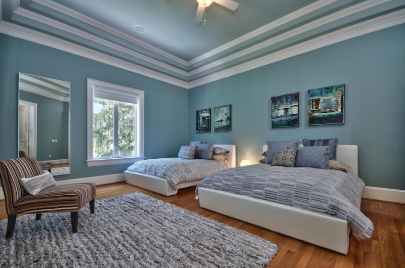 Going back to the outdoors we encounter a magnificent pond, numerous lounging areas as well as a plethora of majestic oak trees.