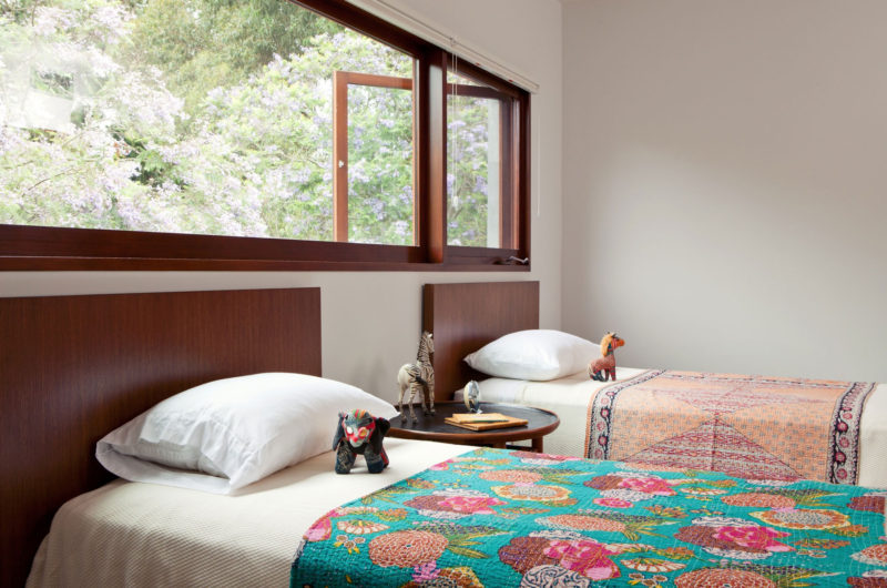 The sliding doors that open to the south and the windows facing north create the connection with the exterior and also cool the house and draw fresh air to naturally ventilate the house.