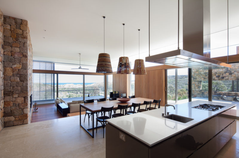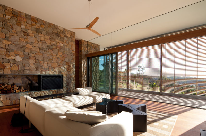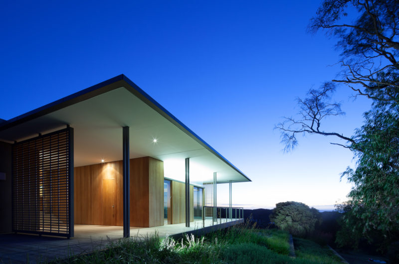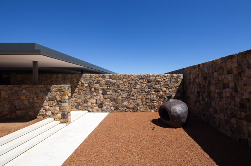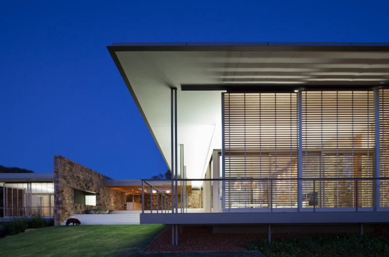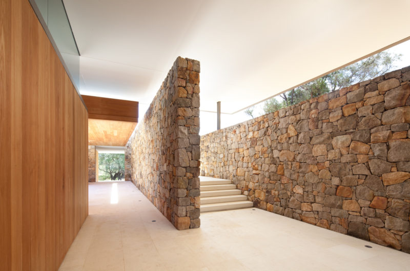 The House in South-Western Australia was completed by Tierra Design in 2011. As you get close to the entrance you are intentionally diverted by a forest of eucalypts and willow myrtles. The approach to the house flanked by trees and landscape is hidden by forest and stone walls.
