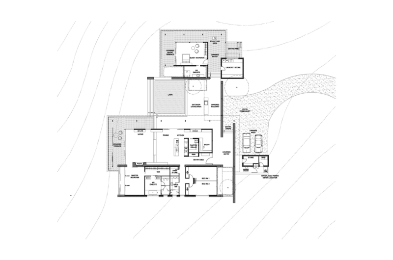 The endemic species planted in the landscape terraces are connecting the residence to the bush land site, in this way creating an uplifting experience.