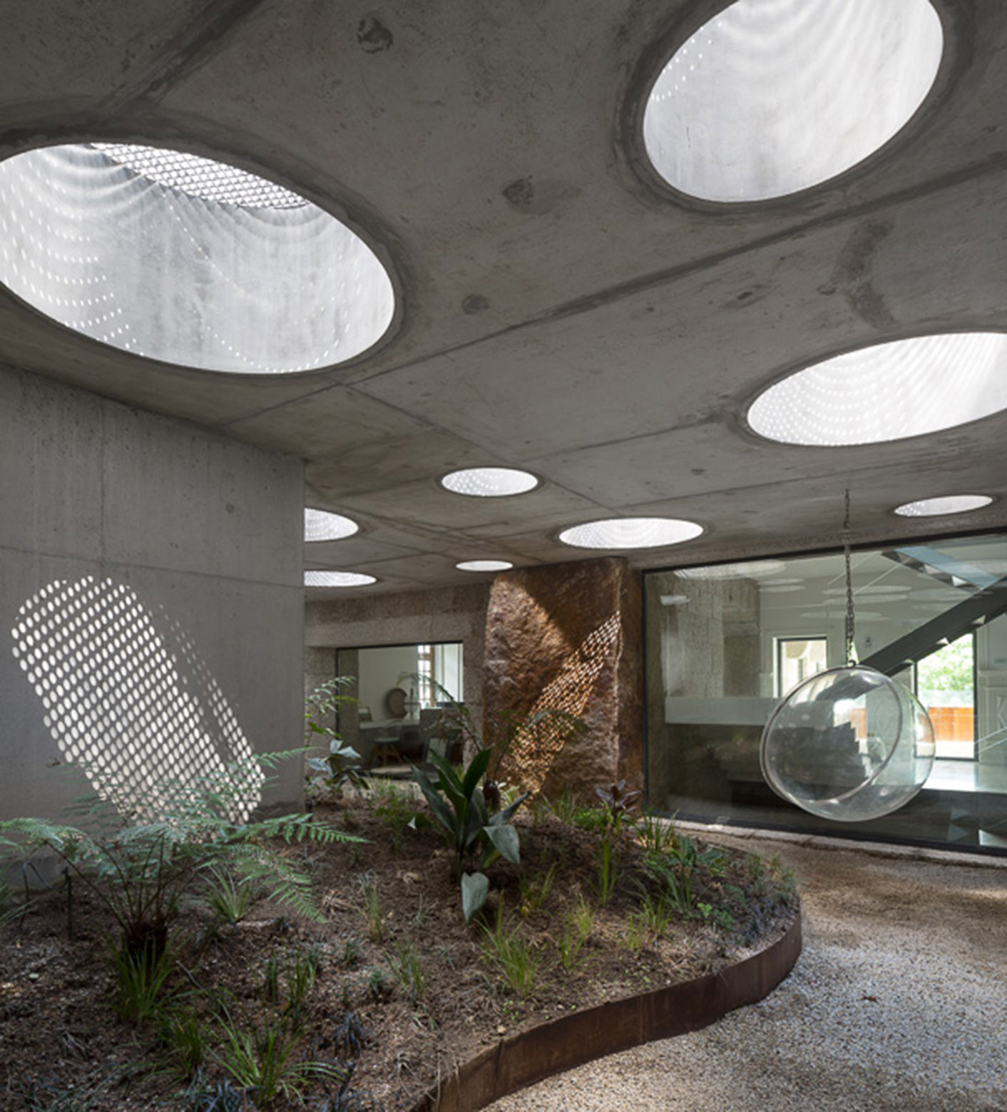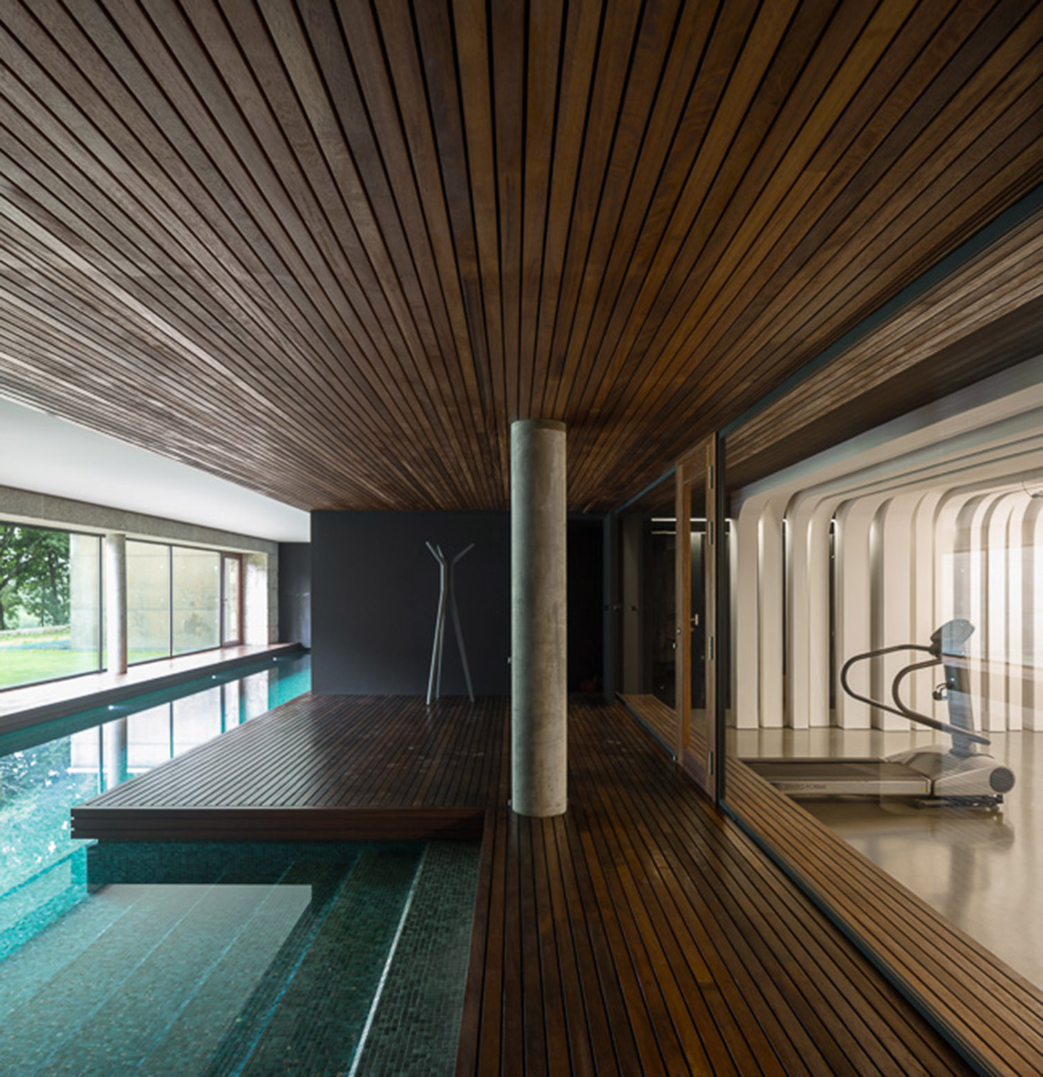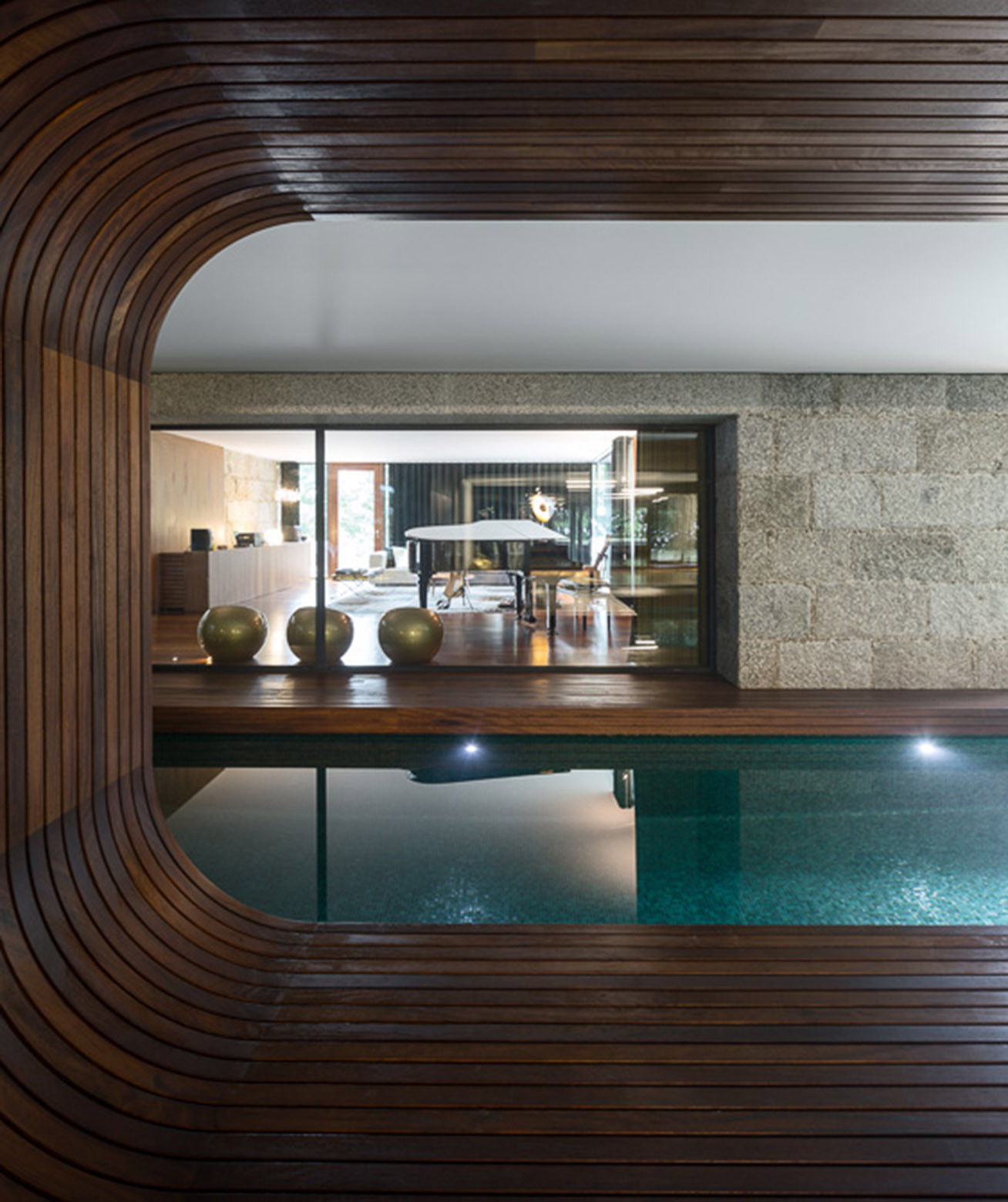 The living rooms extend to the outside on the South, where the pool is the leading element, preceded by terraces and a lounge area that complements the inner social areas.