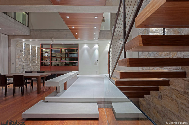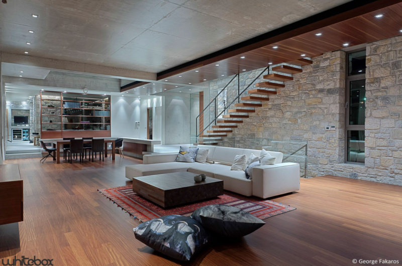 Stone House is a residence for a family of four, located in Anavissos, Athens, Greece, which was designed by Whitebox Architects. Its interior design is characterized as being elegant and rustic because of the stone walls and rich wood surfaces.