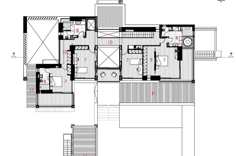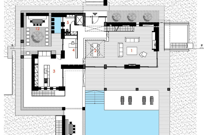 The pergolas from the south side of the house cover the inner space and protect it from the direct sunlight.