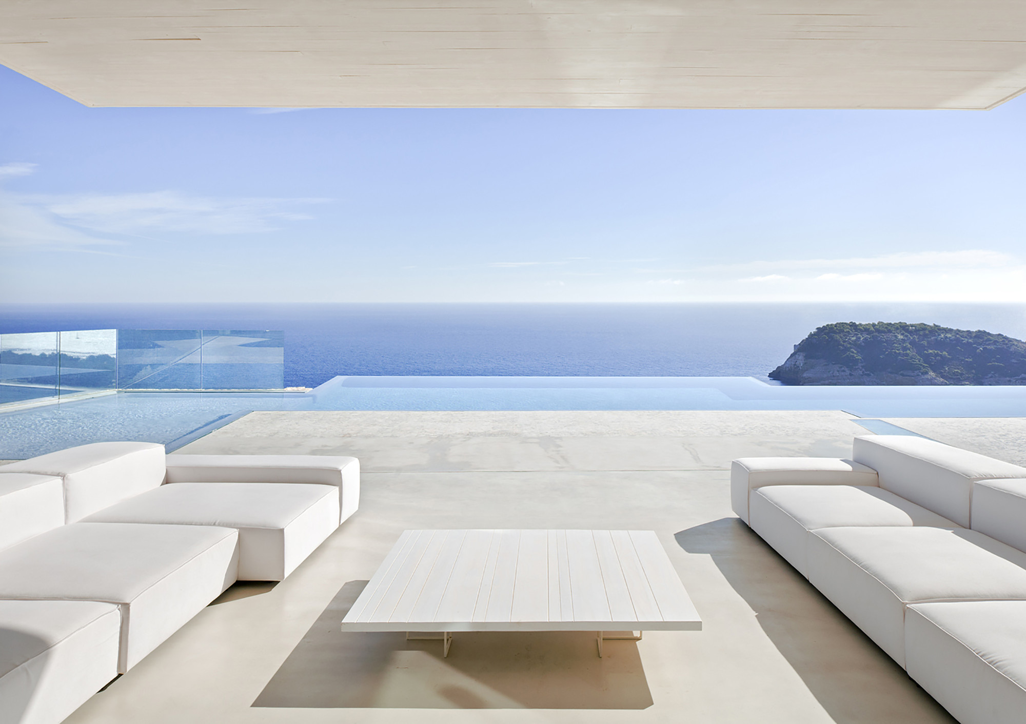Built at a spectacular location between El Portixol and Cala Blanca, the Sardinera House was designed by Ramón Esteve and boasts an east-west orientation that ensures that it benefits from the local breezes as much as possible. Its western facade boasts an adjustable blade that can be steered accordingly in order to ensure protection from the sun during the summer or to capture its rays during the winter. The east facade receives protection courtesy of overhangs.