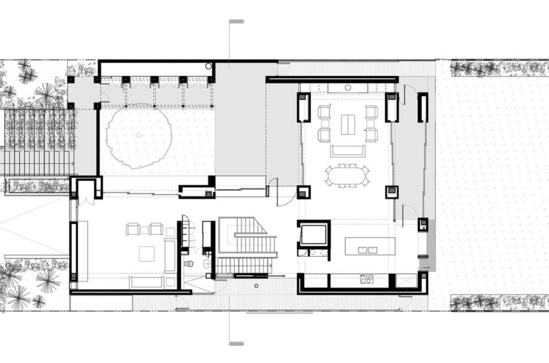 The internal courtyard is formed by two wings, providing an external enclosure protected from harsh onshore winds. The courtyard not only acts a private sanctuary for recreational use, but allows for consistent and controlled ventilation and sun access throughout all spaces in the house. L-shaped single room planning allows movement between interior and exterior spaces to remain unobstructed.