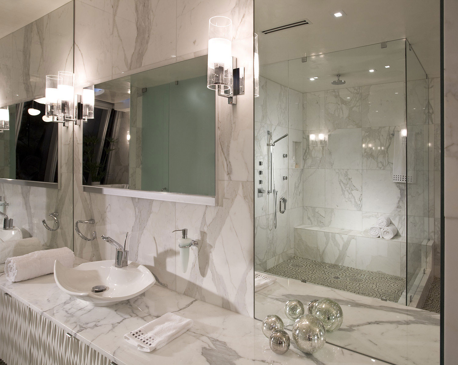 We wanted the space to look light and translucent but at the same time luxurious and rich… clean and modern yet inviting. We based our design decisions on the client’s taste, the architecture of the building, and the location in order to create a second residence that our Chicago client could call “his Miami home.”