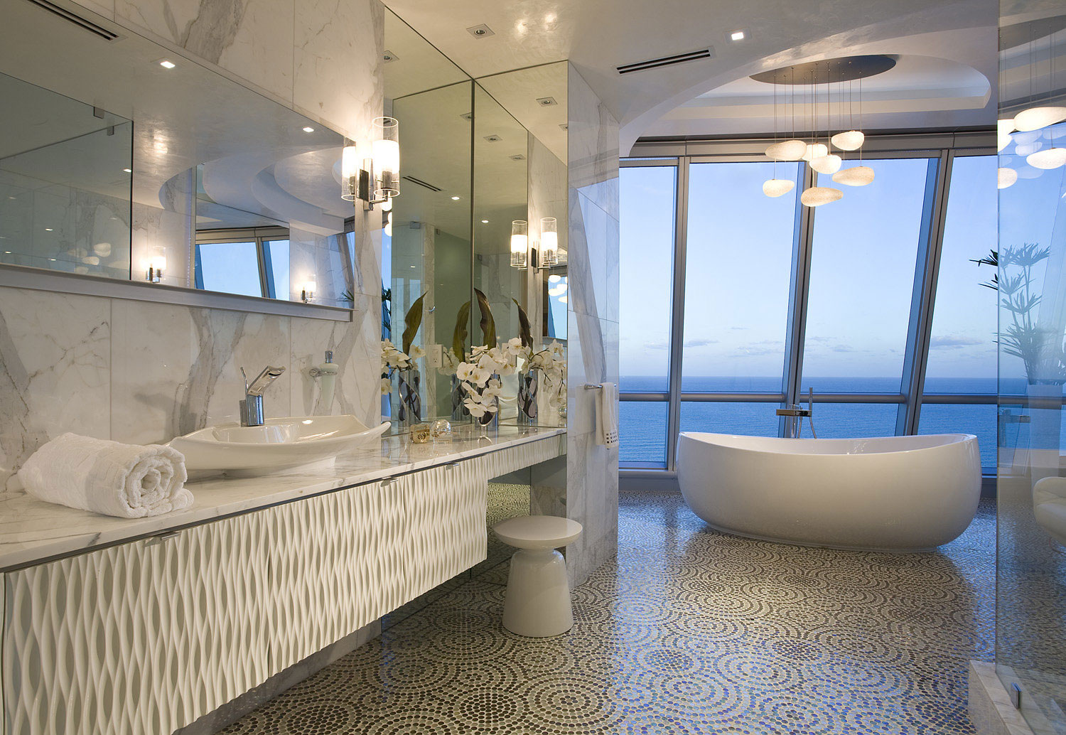 Jade Ocean Penthouse 2 is a luxurious apartment that is located in Sunny Islands Beach, Florida. It was designed by Pfuner Design and benefits from eye-watering panoramas of the ocean due to its exceptional positioning. The designers worked closely with the clients in order to ensure that the end result would meet their expectations.