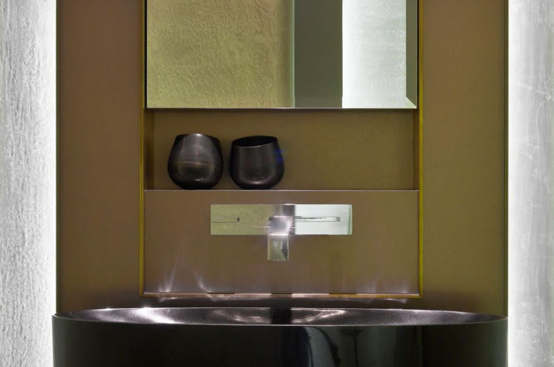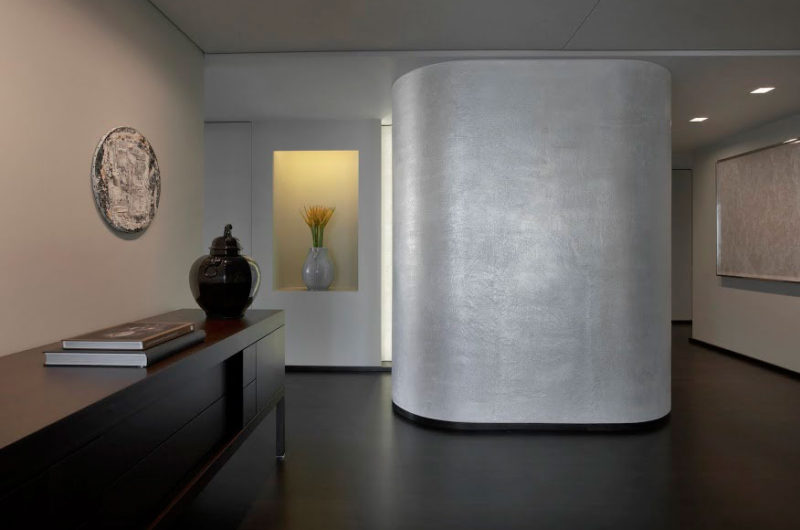 From an architectural point of view, the apartment incorporates complex elements in its design and high-end materials, such as gold leaf, mahogany, white marble, limestone, stainless steel and bronze. The designers carefully defined all rooms and placed the furnishings according to a very specific plan, leaving nothing to chance in order to achieve balance and create an exquisite living environment for the owner and his guests.