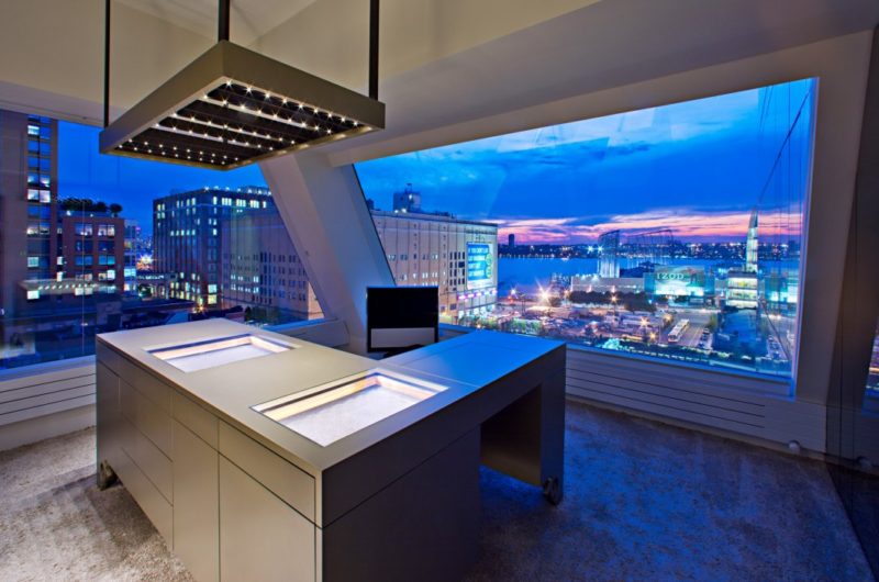 The materials and colors used give a sophisticated and elegant feel to the entire flat, making it seem a comfortable retreat in the middle of the chaotic urbanity. Each room offers splendid views of the surrounding area and New York’s roofscape.