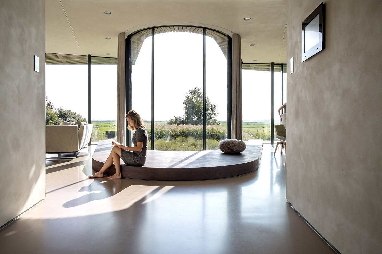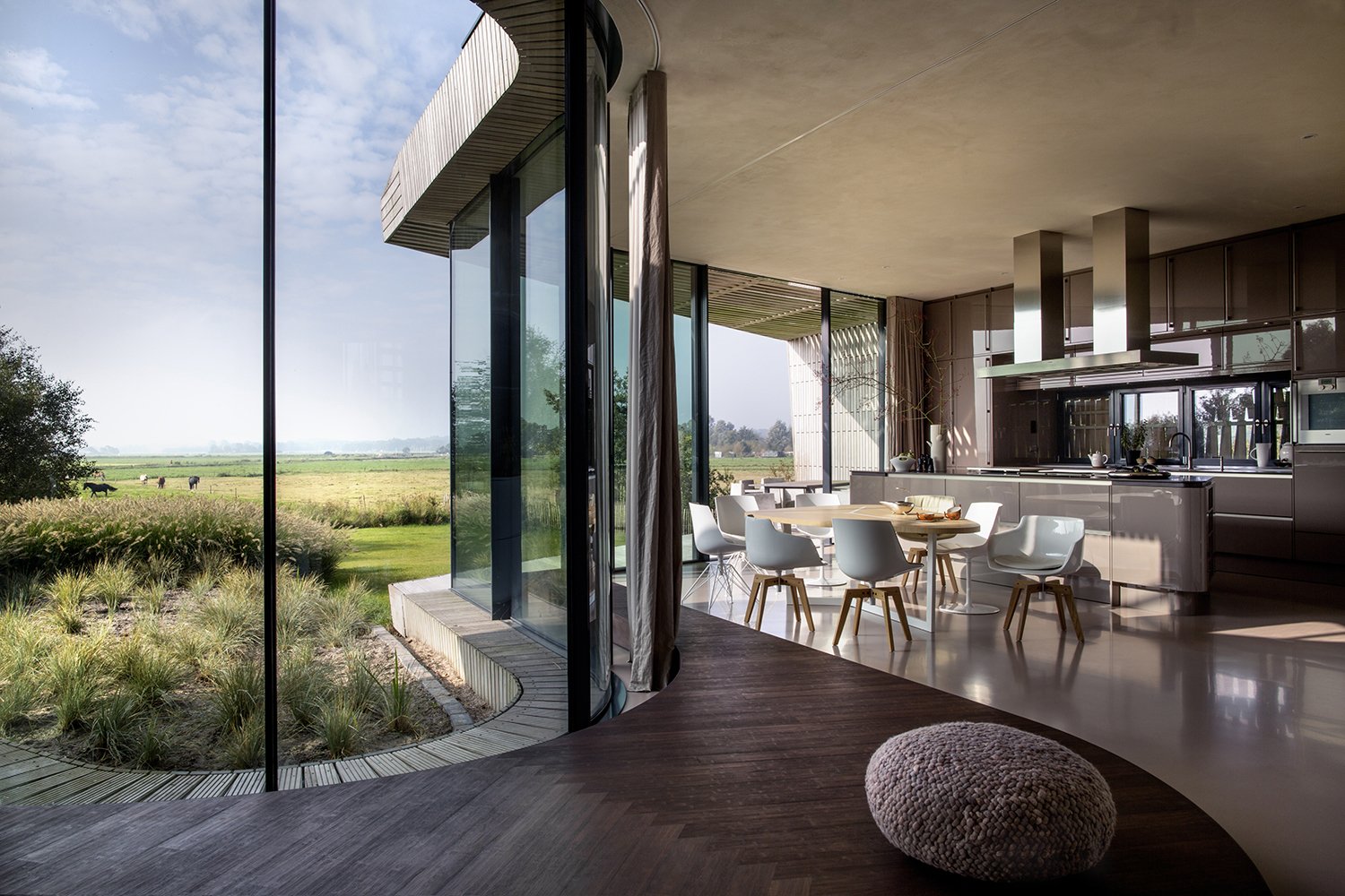The W.I.N.D. House in the province of North-Holland incorporates both integrated sustainable solutions and home automation, whilst flexibility of spaces, the comprehensive assimilation of the surrounding landscape and a centrifugal circulation form the basis of the design.