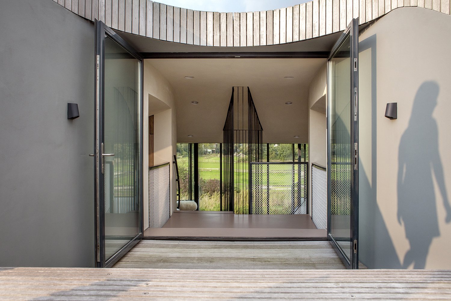 Located on the outskirts of a Dutch village and close to the sea, the W.I.N.D. House is backed by a sheltered wooded area and fronted by a large, open expanse of polder landscape. The design of the house responds to both its setting and to the seasons, whilst regulating and maximising upon the effects of these.
