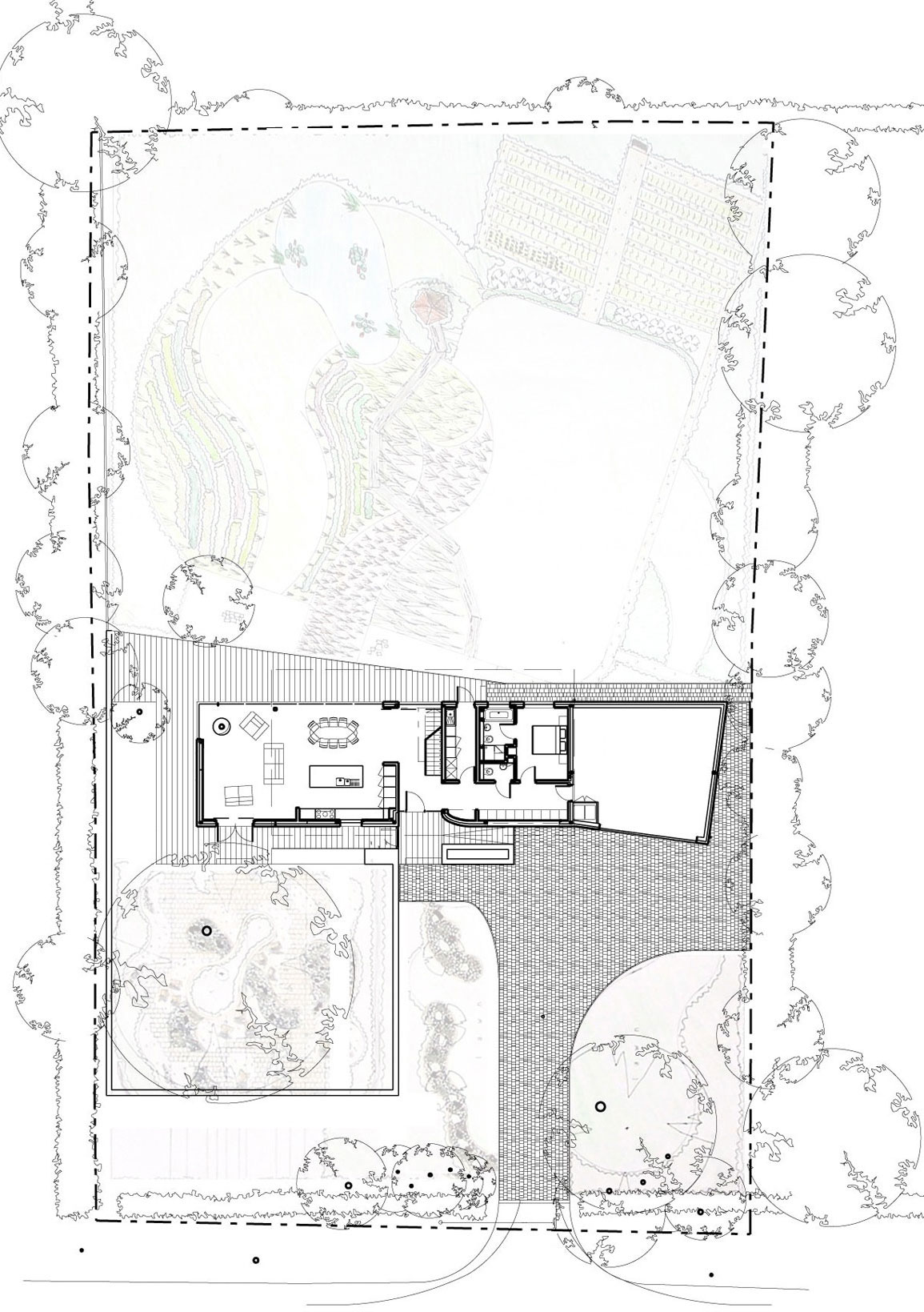 It is surrounded by greenery from all sides, the mature trees all around adding value to the site. It’s a contemporary place that features sustainable technologies such as rainwater recycling and ventilation system with heat recovery.