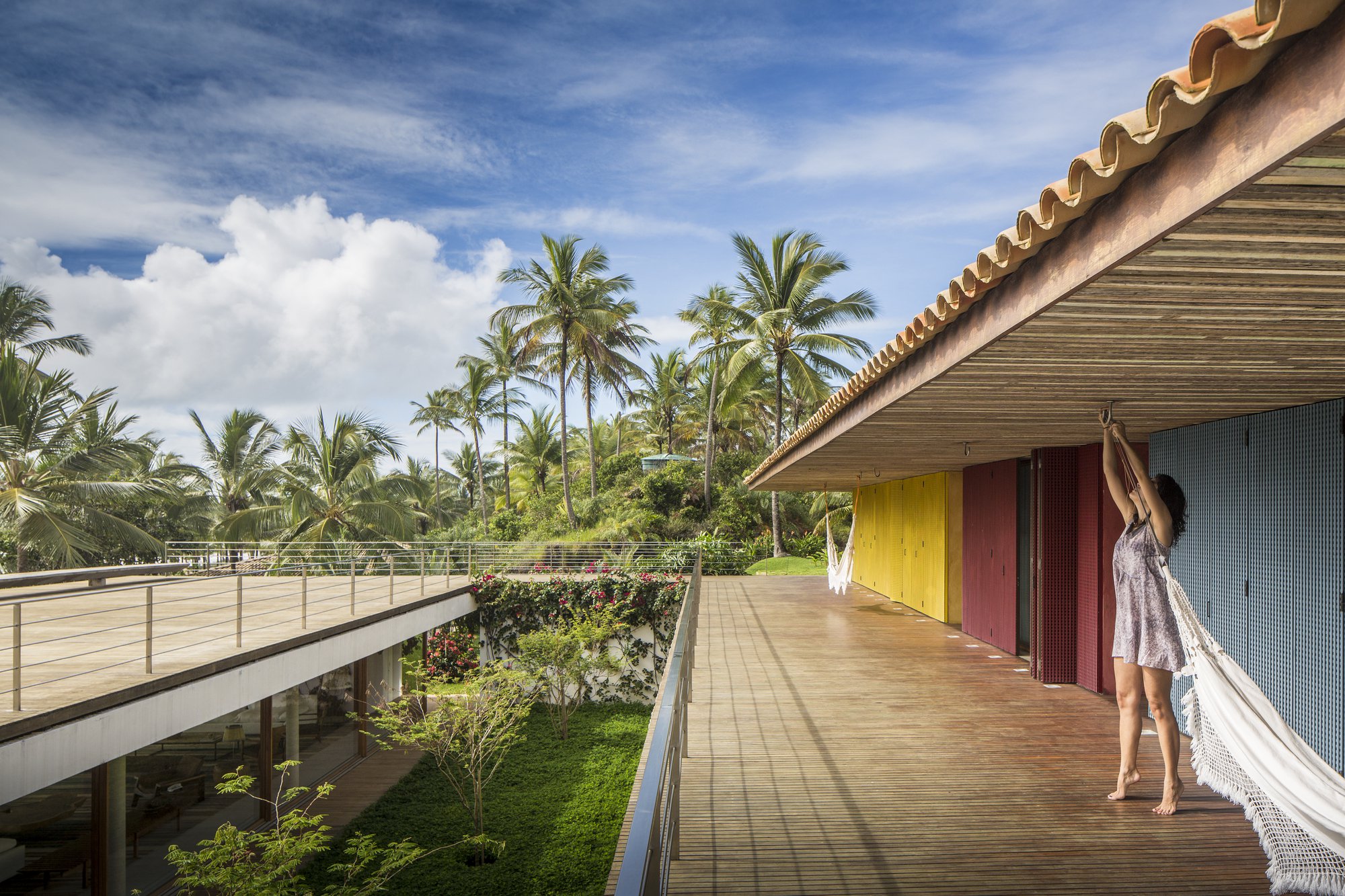 The Txai Housemerges elements of the vernacular colorful Bahian Houses with the precise lines of Brazilian Modern architecture. Located in front of a beautiful beach in the city of Itacaré – in the Brazilian northeast – the site of Txai Housereaches 13 meters above the sea level. This topographical condition allowed for, even with the existing treetops, a beautiful view of the coast.