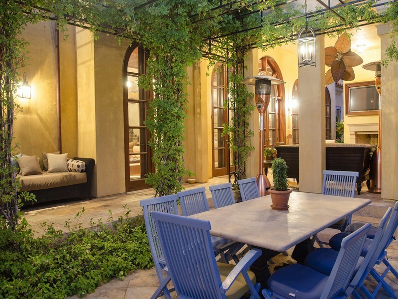 Among all the amenities included, there are a 4-car garage, loggia with fireplace, an outdoor media room, 2,000-square feet of hardscape entertaining area plus built in BBQ bar, 4 gazebos, gardens, landscape lighting and an outdoor music system.