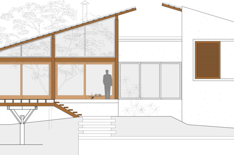 Due to the dry and warm weather, the residence was projected to have cross ventilation in the bedrooms, generous eaves, ceramic roof, an exterior living area and also double high ceiling in the social area.