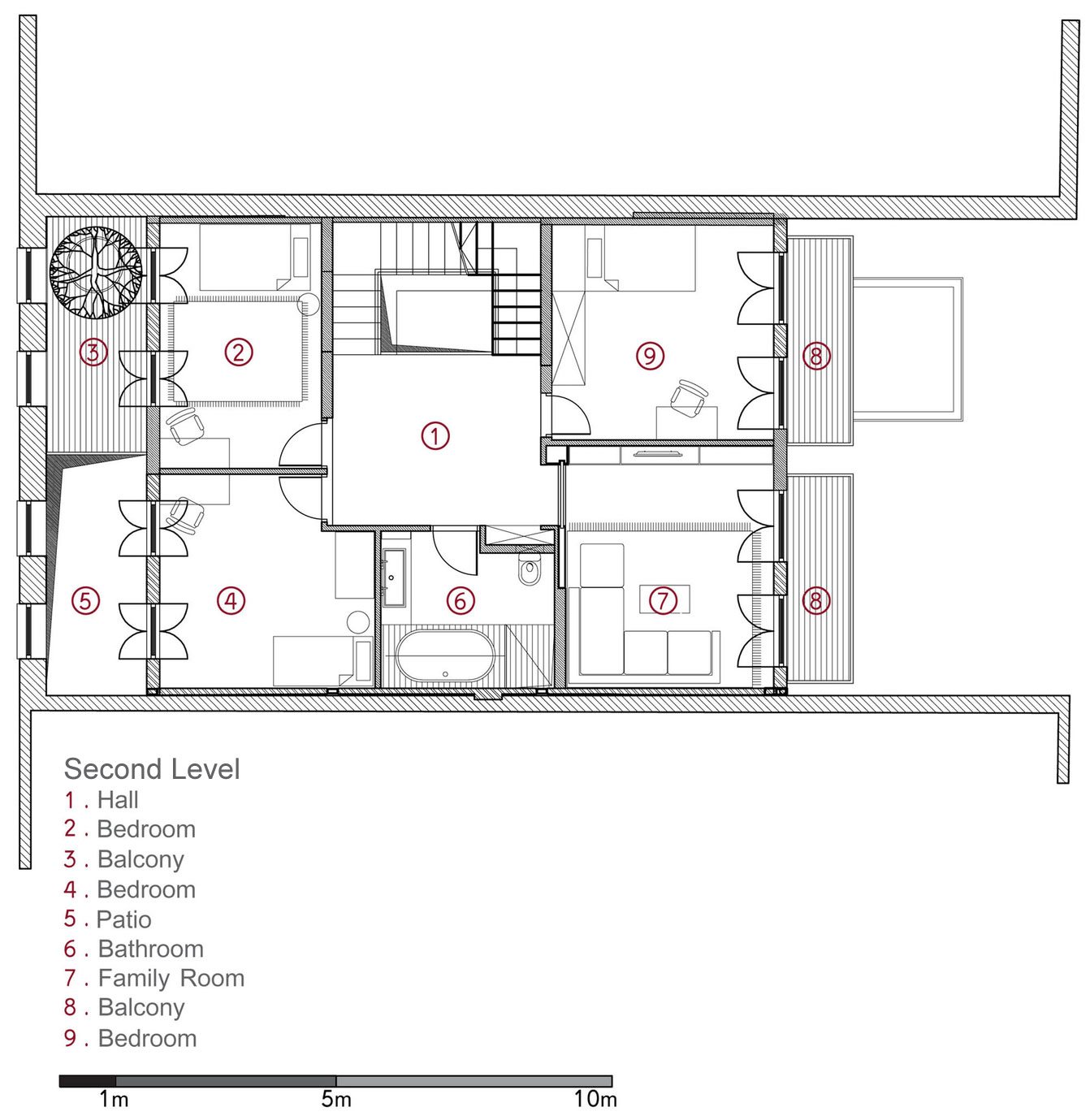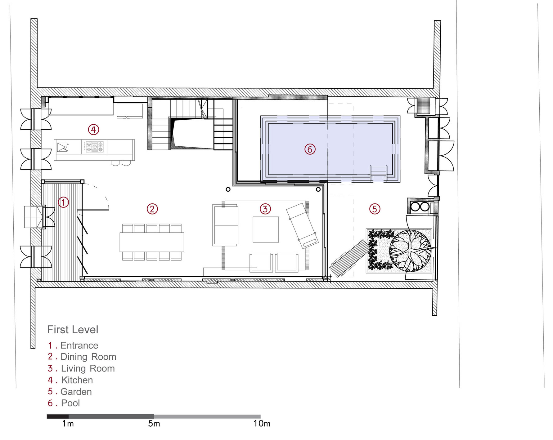 Even though it features a series of locally inspired elements such as patios, a courtyard and a series of terraces, these elements were designed with modernism and convenience in mind, which is why they turned out so spectacular. The magnificent green courtyard houses a large swimming pool that can easily accommodate the owners as well as their guests in utmost comfort. Once inside, one instantly comes to realize that this is a family home at its core, all thanks to a lovely selection of colorful décor elements and furnishings complemented by natural plans.