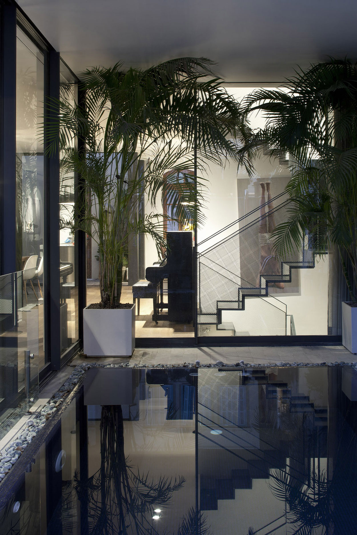 In order to ensure an adequate degree of transparency and natural light within the abode, the architects that were in charge of the construction process implemented a plethora of glass elements that were meant to smooth the transition between the exterior and interior spaces. All in all, the V House in Tel Aviv is a stunning place to come home to everyday and a spectacular example of contemporary design and ingenuity.