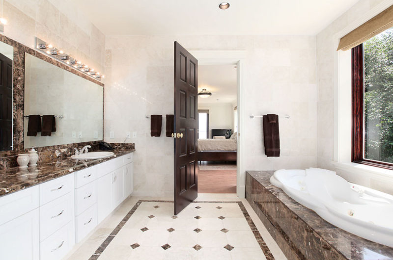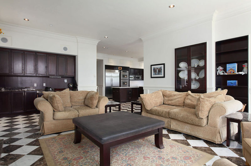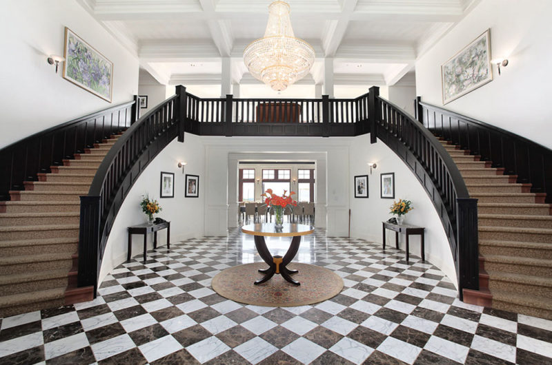 This truly iconic residence flaunts an imposing granite-made exterior and a sophisticated interior, with marble tiles and two curved staircases, placed conveniently at the large formal entrance that welcomes the owners and their guests.