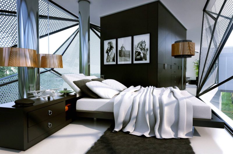 The entire house is flooded by natural light due to the large open glazed panes mounted on riveted metal frames.