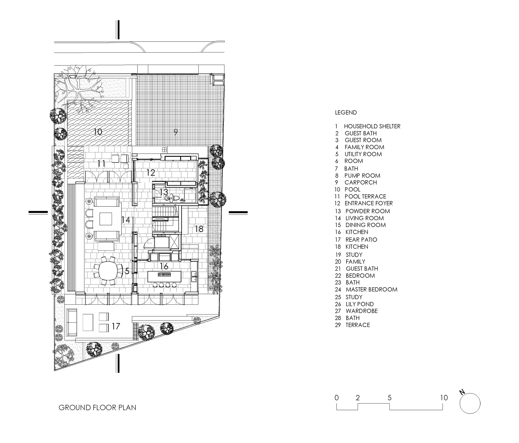 The spaces in this family home on Chiltern Drive in central Singapore were crafted like a garment, woven around the needs and desires of its inhabitants. The home aspired to be deeply rooted, connected to the surrounding environment, the history of its development, as well as the family’s lifestyle.