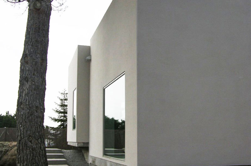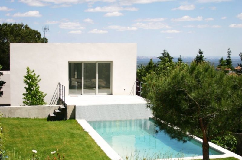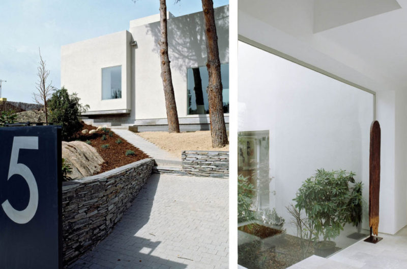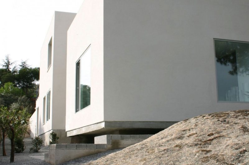 Located in Spain, the Casa del Pico residence was completed by ÁBATON studio. This 3,143-square-foot two story residence is built on a high slope covered in granite. The irregular bottom of the swimming pool tries to imitate the shape of this rock.