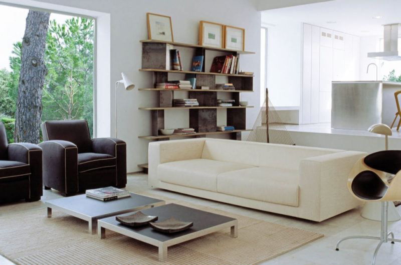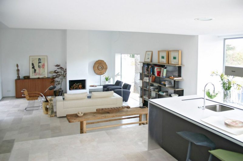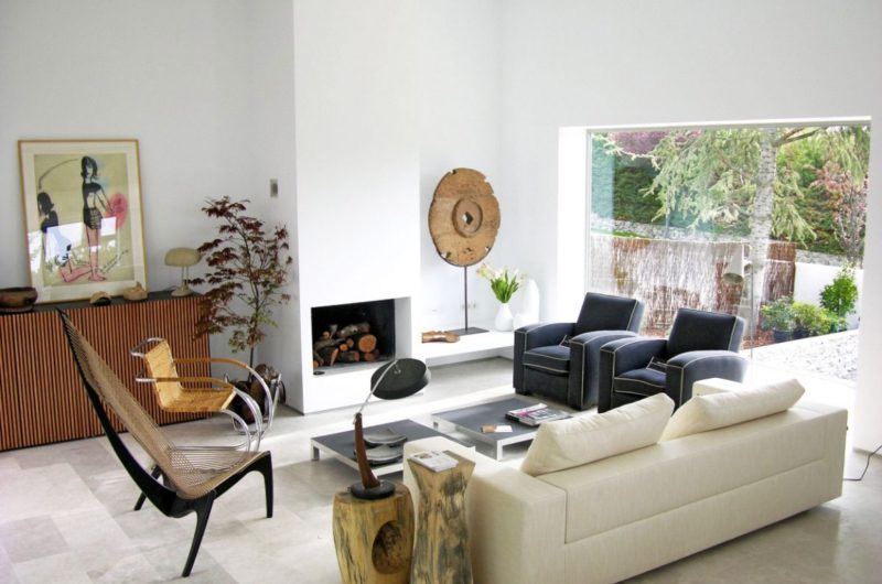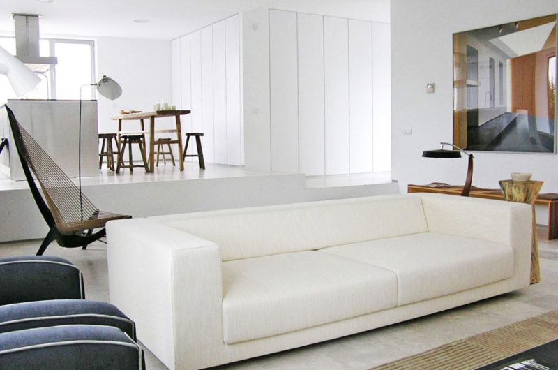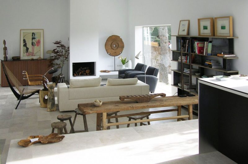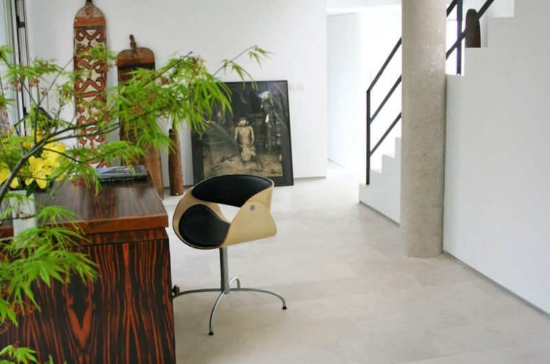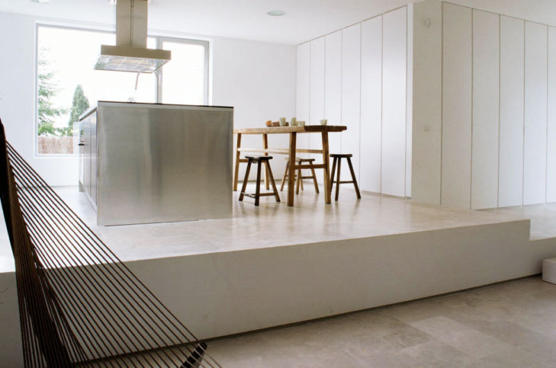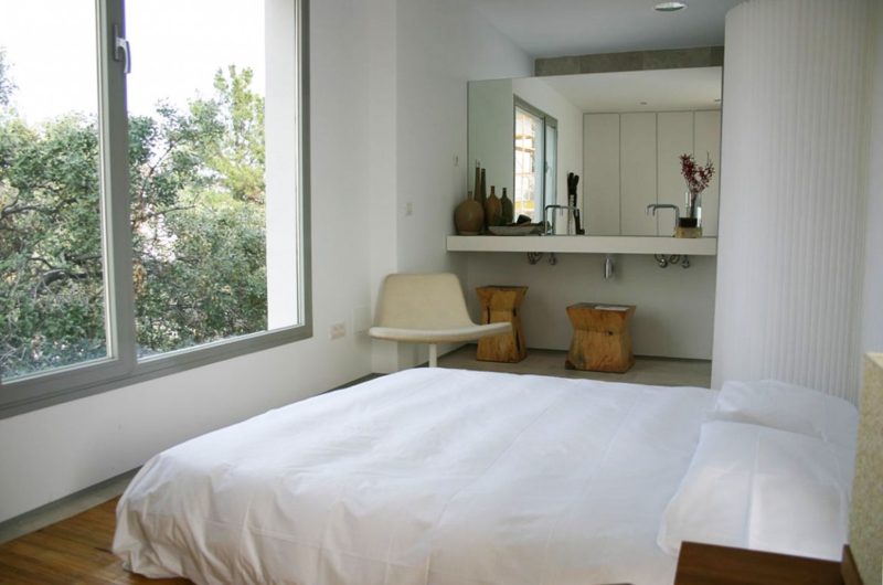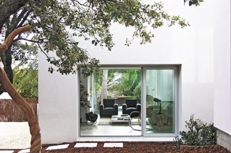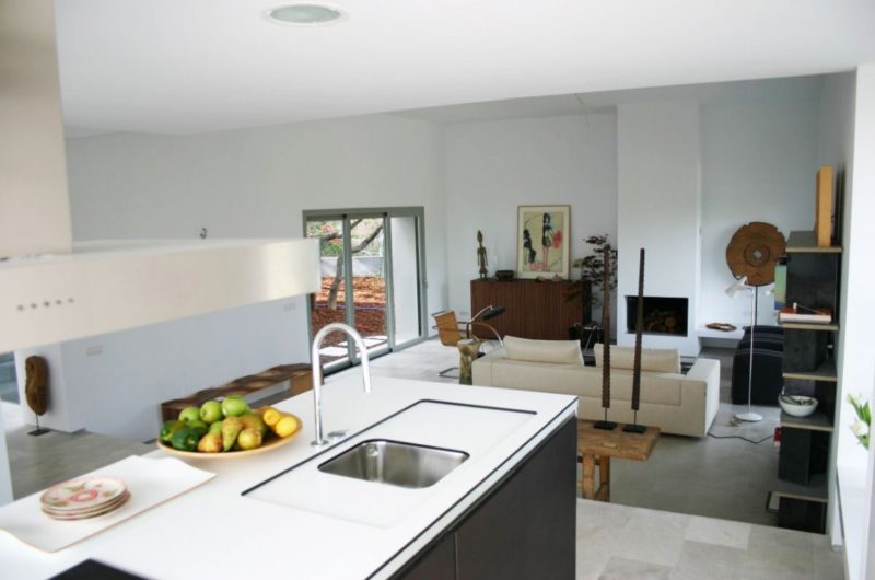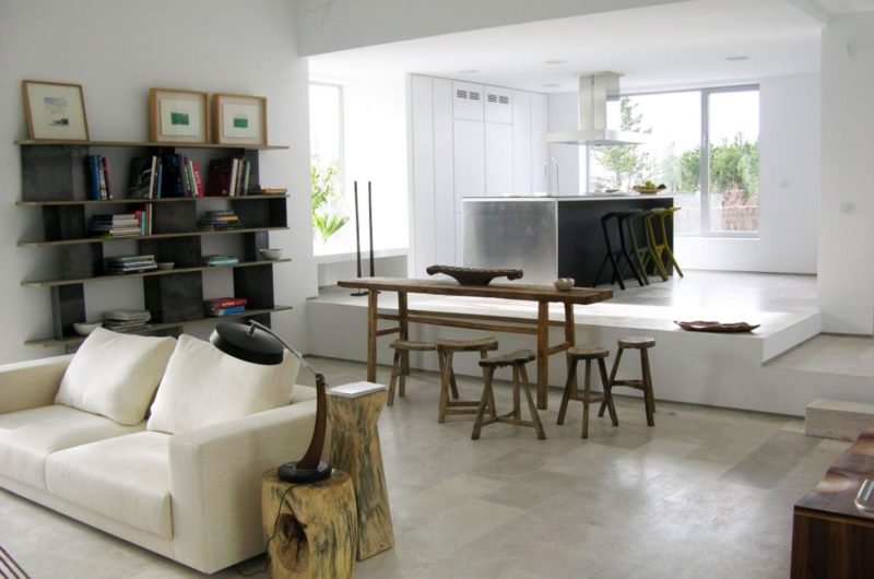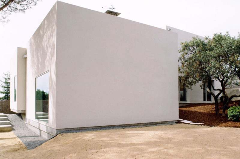 The ground floor, which includes the living area, was designed to be in contact with the outside space and the garden. The second floor features the sitting room and the bedrooms, which overlook the swimming pool. The house also includes a beautiful terrace, which offers amazing views of the surroundings. All the rooms are different because of the changing levels of ceilings and floors.