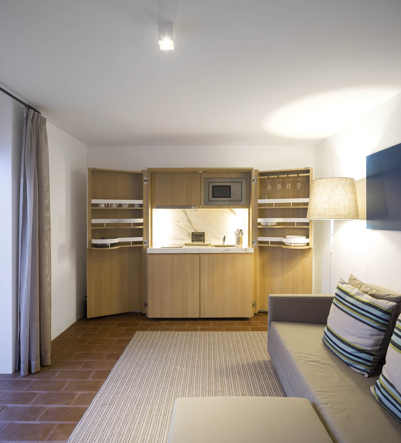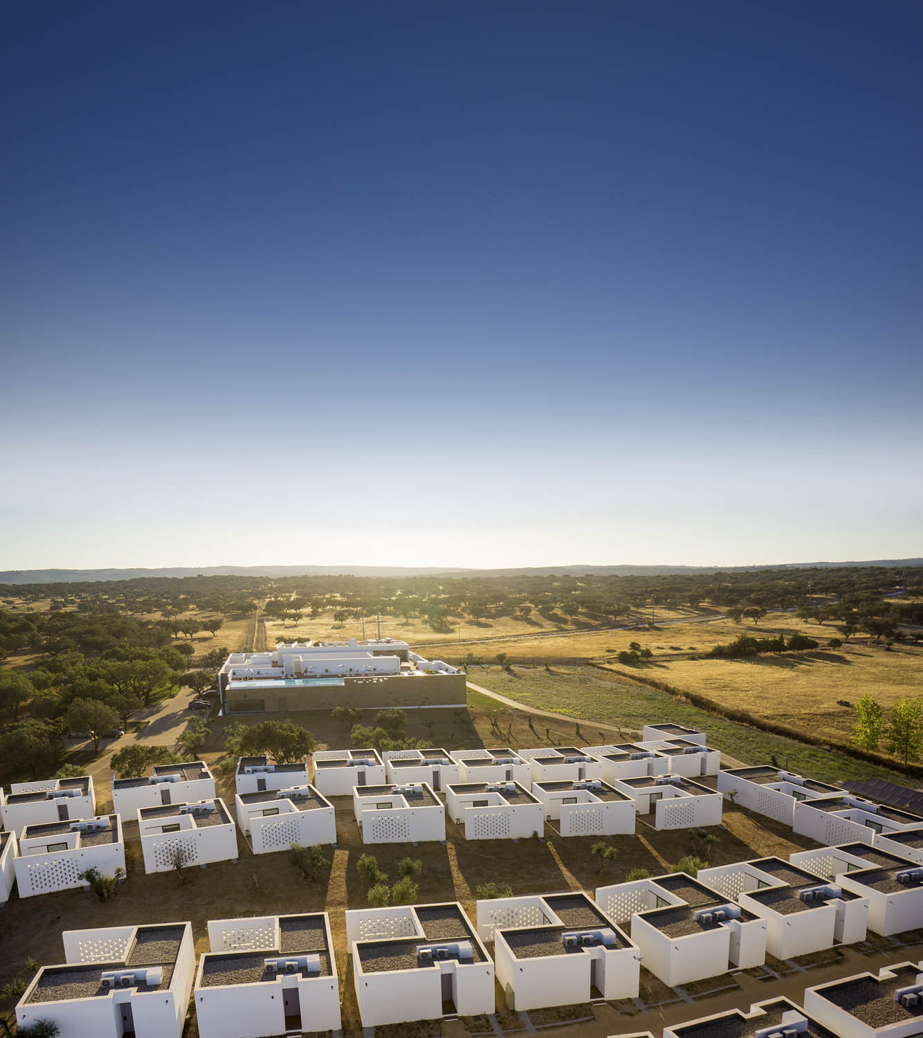 The main building we mentioned before comprises all of the hotel’s facilities, and it was sketched out following the guidelines of Arabic architecture, which is why it boasts small outside openings that are complemented by cork coating in order to ensure an optimum thermal balance at all times.