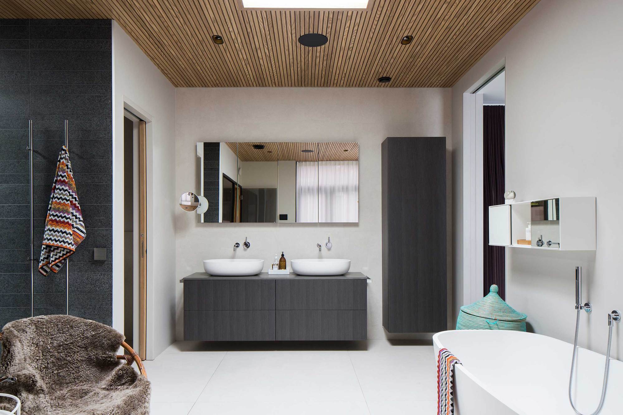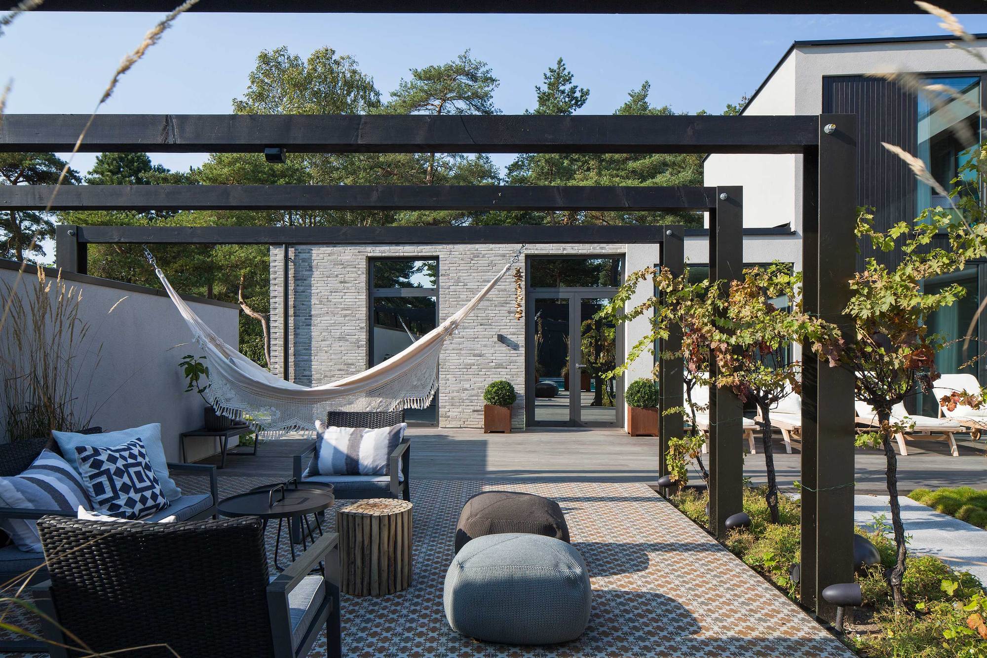 The main structure was put together using reliable materials such as steel, wood and concrete. The façade includes black aluminum elements as well as stained pine, light grey features and Danish brick. Last but not least, the doors of Villa J were made specifically for it by Snickerbolaget, while its windows bear the brand of Schüco.