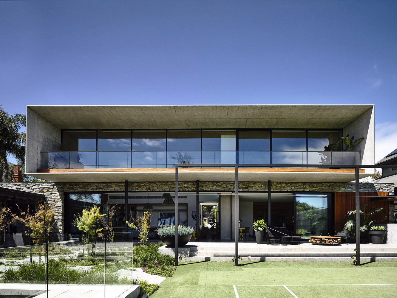 The Concrete House is a contemporary project that was completed in 2015 in Melbourne, Victoria, Australia by Matt Gibson Architecture. When they designed this simple yet impressive house, the architects made sure to create a good connection between the indoor and outdoor spaces by installing large windows and sliding glass doors.
