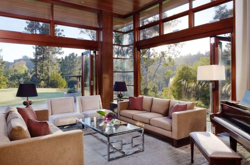 The Contemporary Home in Brentwood is custom residence (10,000 sqft), designed by the genius minds of the Rockefeller Partners Architects who conceived it according to the client’s personal demand. The house is split into two wings – north and south – which have access to the spectacular canyon views. This home is the perfected balance between form and function, proportion and natural light and also astunning modern residence that showcases a fabulous level of craftsmanship and attention to detail. It was built paying attention to the finest details, from the pool to the staircase and the quality of materials. It’s perfect for demanding and perfectionist persons.