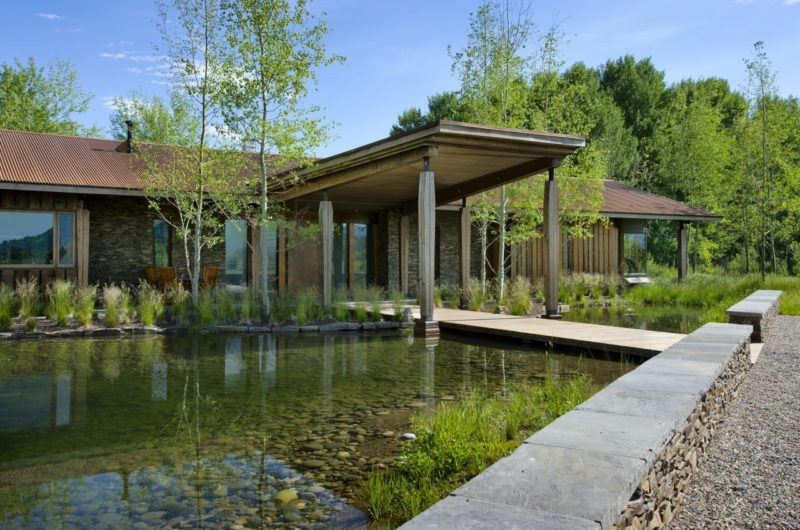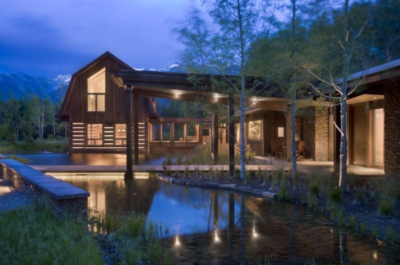 The EHA Family Trust Residence located in Wilson, Wyoming, United States is a 3,988 sqft residence finished in 2011 by Ward+Blake Architects. The house was elevated three feet above existing grade because of the low lying wetland.
