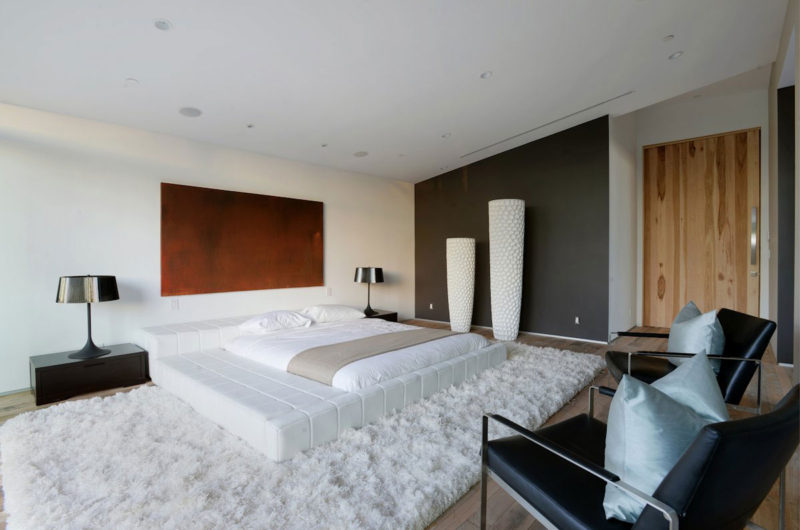 The bold colors and the contrasting materials make the indoor space more welcoming and cheerful, while the use of Japanese style plant separators, step-up floor to the kitchen and precision lines and surfaces turn the place into a tribute to a relaxing life. The rooms are also designed in the same relaxed and cozy spirit, as the rest of the house.