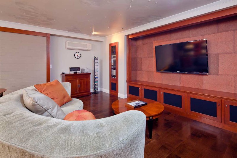 The $14,999,995 worth, three-level property will impress with attention to details: beautiful fireplaces, natural wood flooring made of oak, stone elements, a home theater, a wine cellar with controlled temperature, spa facilities, and modern technology. For accommodation, the dwelling has 6 bedrooms and 7 full-bathrooms, but two of the bedrooms are on a lower level and can get multiple uses, from guest rooms to staff quarters.