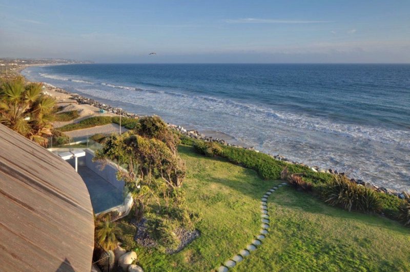 This project is a modern estate created by Frank Gehry and is located on Malibu’s Broad Beach. The main residence features a formal living room that includes 20 foot ceilings and the family room that provides access to the courtyard.