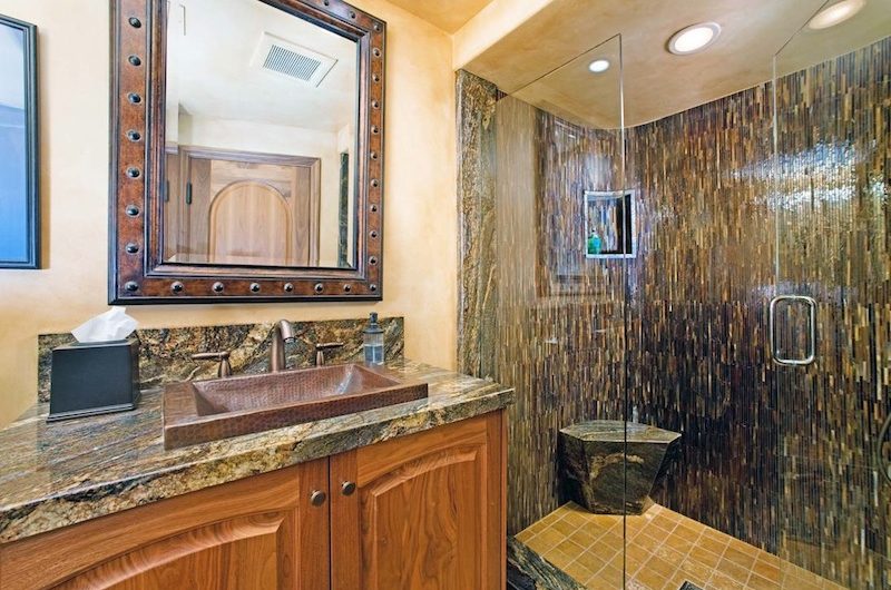 The media room is something you’ve never seen before because it has zebra-wood cabinetry and a lush master bedroom with private bathroom with an enormous tub.