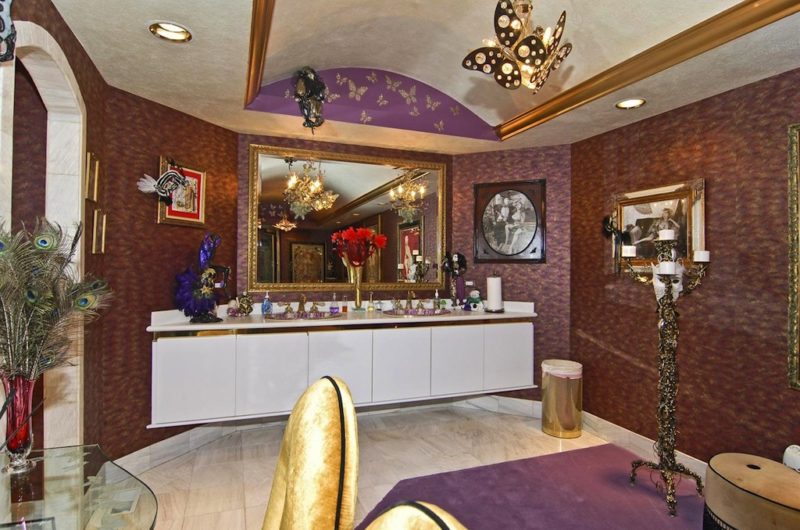Extravagance is the appropriate word for the Magnificent Mediterranean Residence which features an outdoor fountain and guest parking, a 4,000 square foot ballroom, a fireplace, 2 stories of glass and an elevator entirely made out of glass. Also, the pool house is a complete annex with his and hers baths, wet bar and volleyball court.