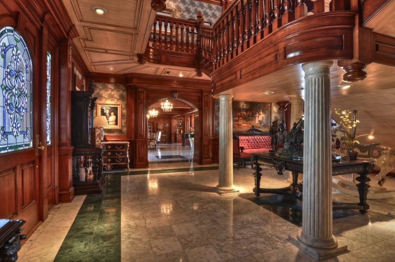 The 15,000 square feet main house features an amazing entrance and a deep porch that stretches the length of the residence.