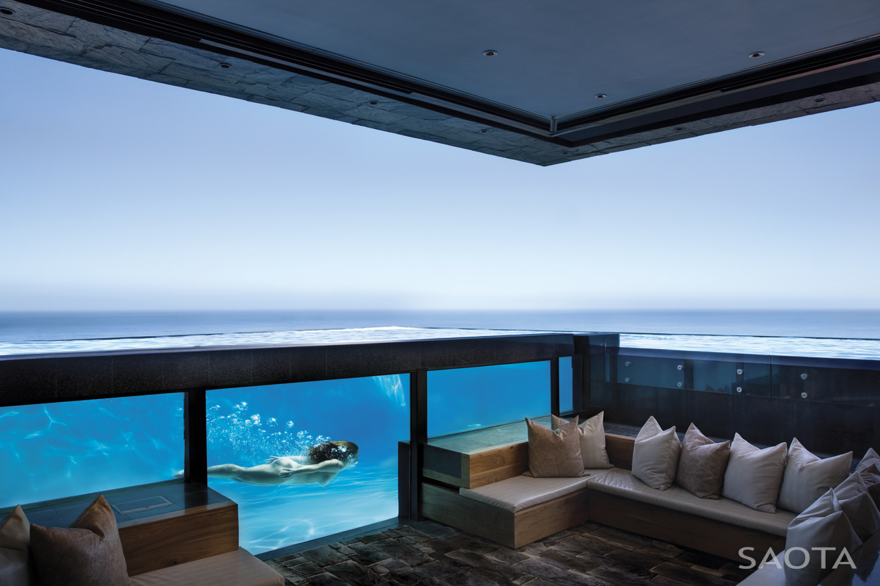 It offers gorgeous views over the 12 Apostle Mountains, Clifton beaches and Robben Island. Because the upper level floats over the first floor, this thing caused the exaggeration over the building’s height. All the rooms are facing the sea view.