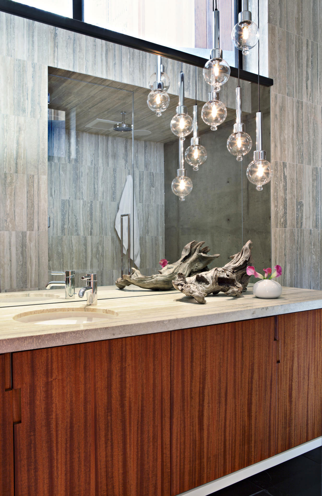 Bursting of luxury and fine taste, La Cañada Mid-Century was designed by Jamie Bush & Co with the idea of creating a contemporary place where a young and vivid family could live at the highest standards of elegance. Located in Los Angeles, California, this house had to be in accordance with the wild and glamorous city life. Some of the finest materials on the market were used to its construction, such as stone, glass, wood and steel.