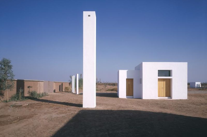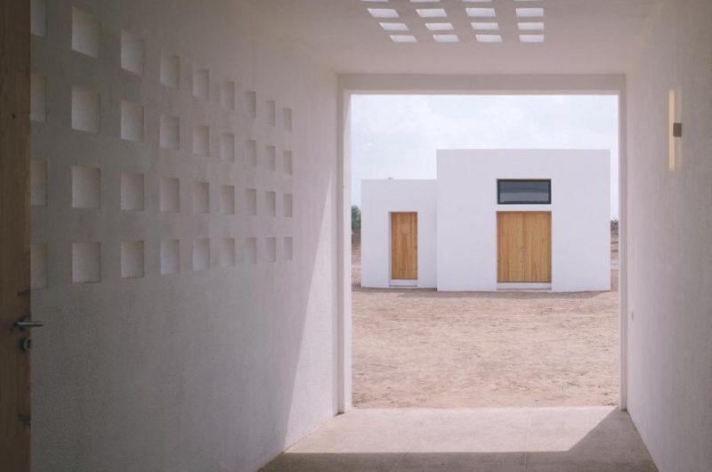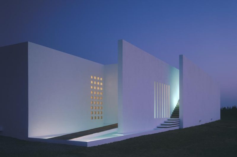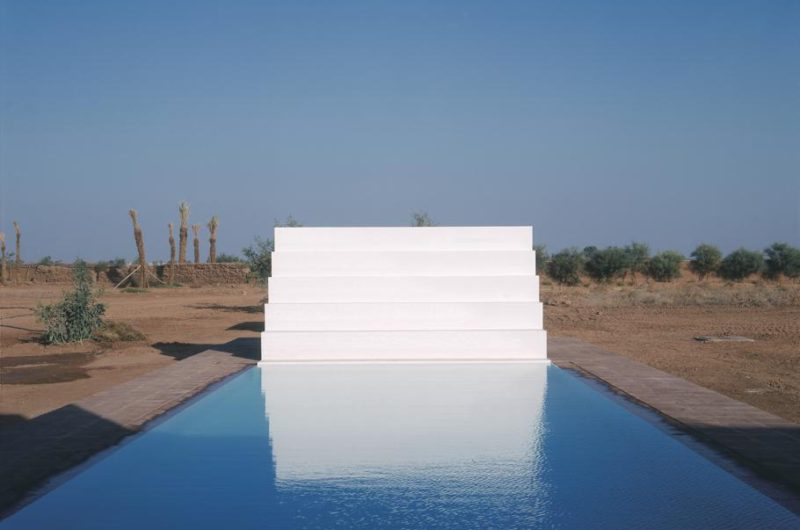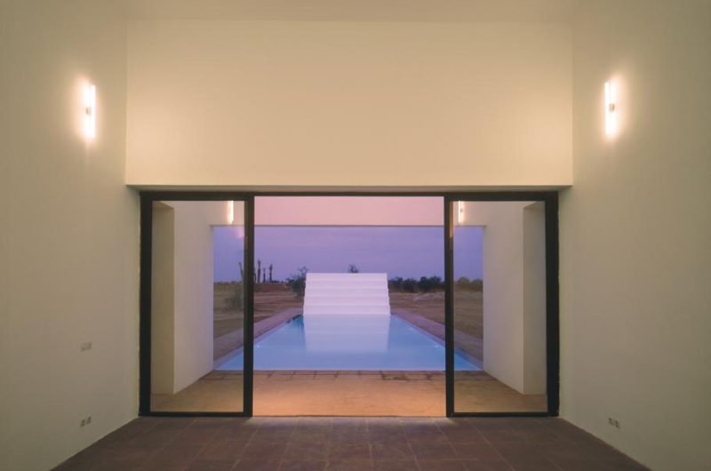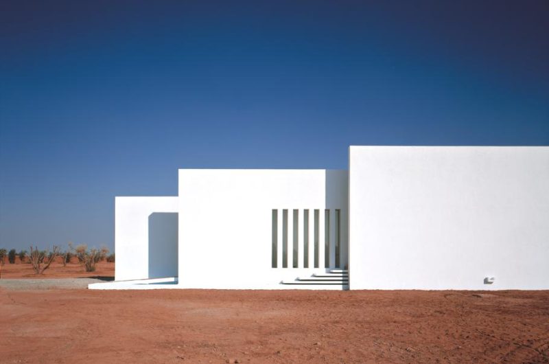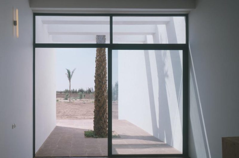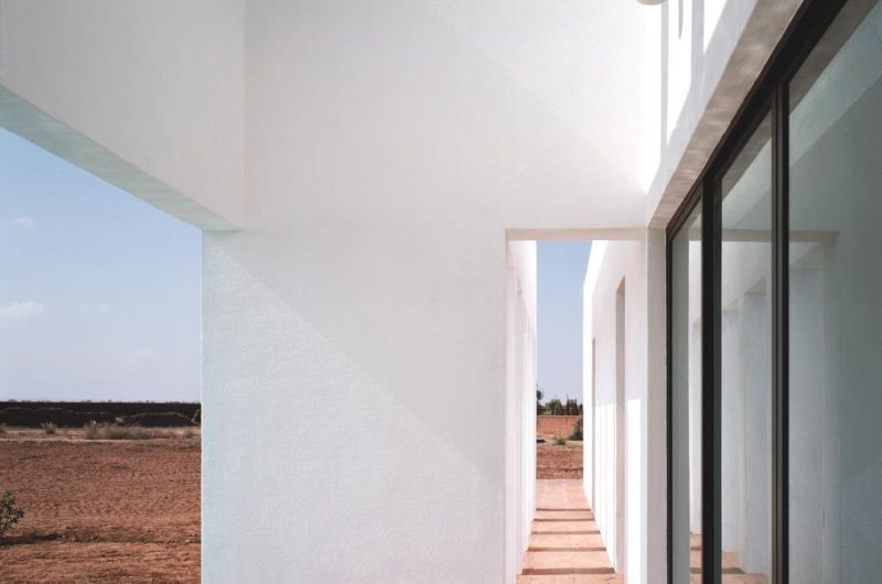 Located in Marrackech, Morocco, the residence impresses with its minimalist architecture, which comprises large heights, a play on shadow and light, and flowing, open spaces. Two parallel concrete walls protect the house to the west and also the steep stairway that stands between them. The rooftop terrace opens towards amazing views of the Atlas Mountains and the surrounding area.