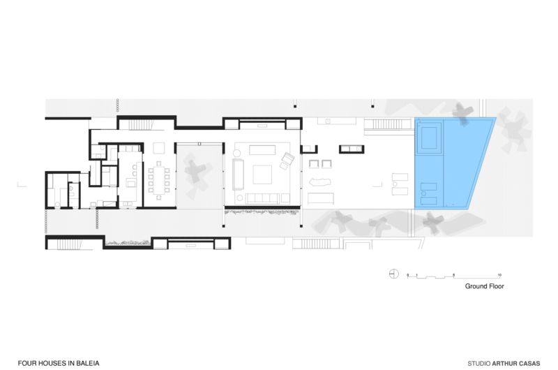 Each home features social areas on its ground floor and boasts large glass panels that blur the boundaries between the indoors and outdoors. Speaking of the outdoors, the terrace features lounging chairs placed in close proximity to a swimming pool. There’s also a sauna and a Jacuzzi at the basement level, while a special barbecuing area is found at the rear of the patio. The 3 floors of each house are linked via wooden staircases. The first floor includes the master bedroom with its large, comfortable bed and large windows that ensure breathtaking views of the sea. The second floor flaunts a sunbathing deck placed directly above the master bedroom as well as a home theater that can be used to enjoy great movies in fantastic detail.