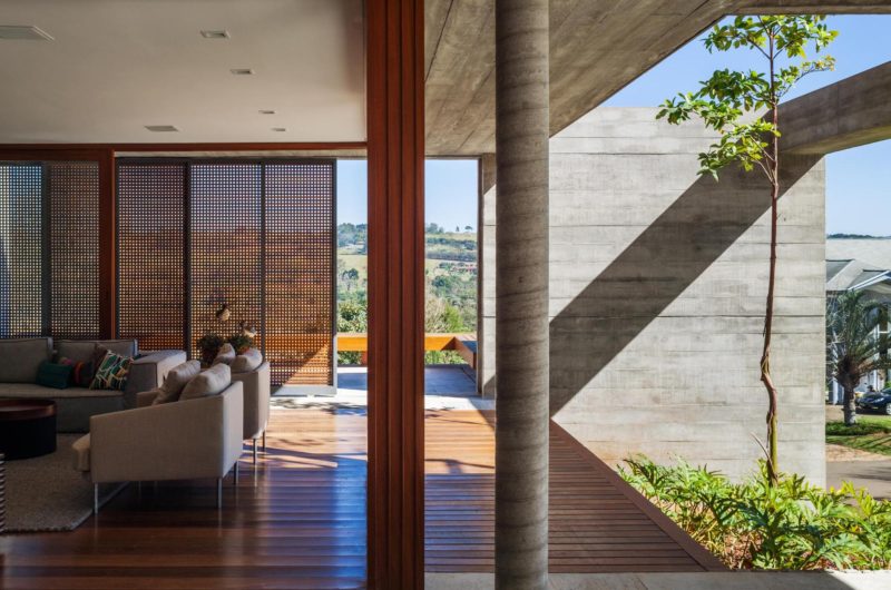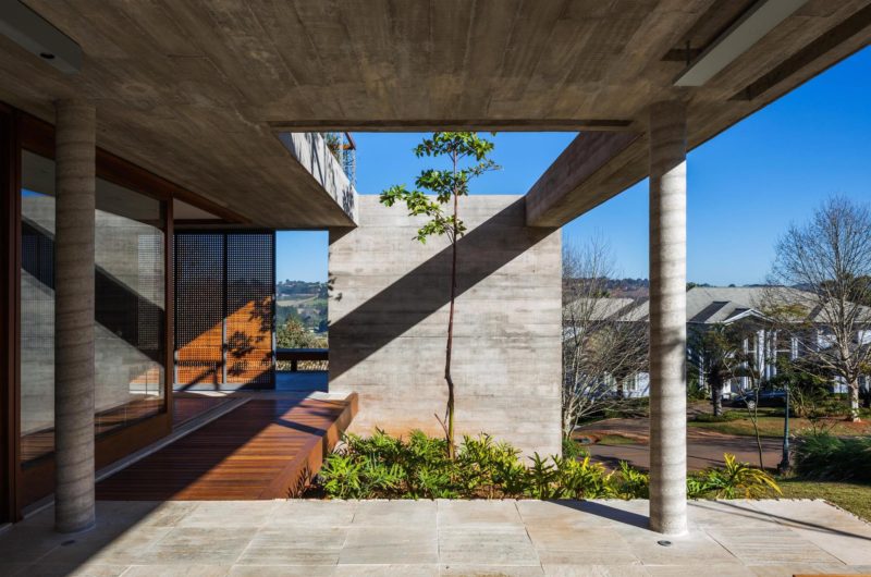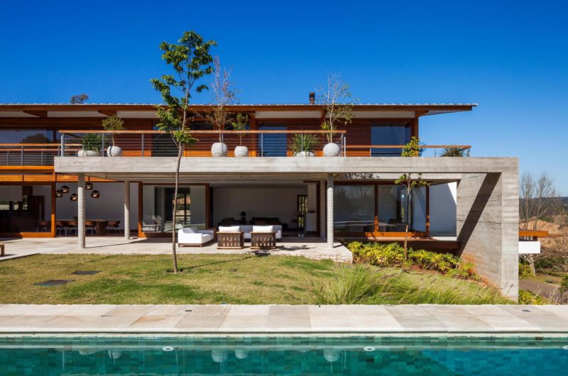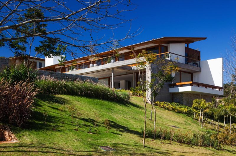 In this holiday and weekend home in Sao Paulo, a steep terrain and a nice view were the main elements defining the location and volume of the project.