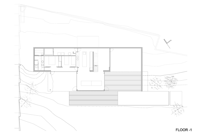 The main volumes of the house were created using concrete and glass, but the façade also incorporates numerous cedar wood elements for a touch of contrast. Thanks to the home’s elevated position and very large windows, the residents are able to enjoy picture-perfect views of the nearby plains and forests while they are relaxing or dining, but they can also feast their eyes on the same panoramas while swimming in the private pool.