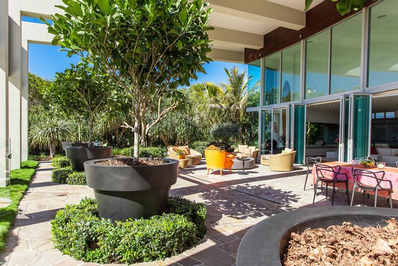 The immaculate gardens include a fire pit for conversation and star gazing, an outdoor pool and a spa.