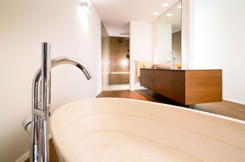 Even though the main living areas feature a predominant shade of white, they also boast super wooden furnishings as well as lovely houseplants for an extra touch of contrast and liveliness. The bedrooms and bathrooms feature all sorts of high-end amenities and ensure an appropriate amount of privacy, while the main living room acts as an open space boasting never-ending views of the nearby lake and not-so-near mountains.