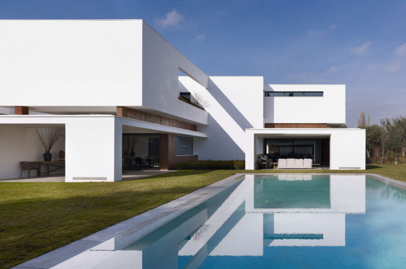 The owners wanted to be able to enjoy fabulous views of the surrounding environment from almost every room, which means that they didn’t want to be exposed to the urban views of the street. In order to meet their expectations, the architects implemented a circular wall that surrounds the rear of the residence and creates a selection of patios. Other outdoor highlights involve a gorgeous swimming pool as well as lounging and dining areas that are linked directly to the outdoor environment.