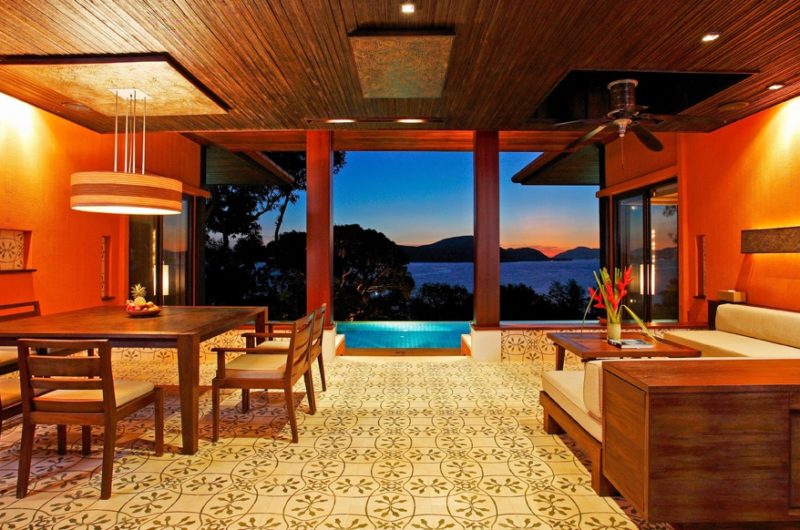Sri Panwa is set on a 40-acre property dominated by breathtaking tropical landscapes. The 5-star resort welcomes its guests in luxe pool villas with tall ceilings, elegant yet cozy interiors, spacious living areas, and spa-inspired bathrooms (marble basins, luxe tiles, and deep tubs).
