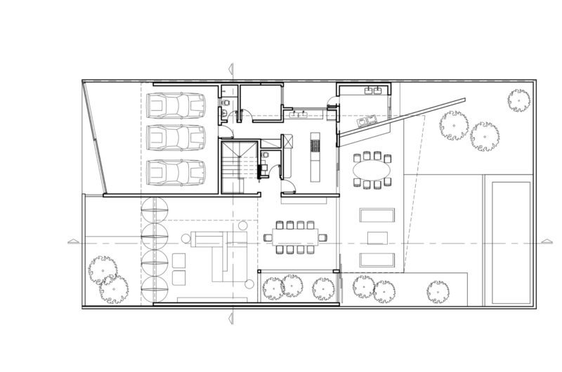 Due to the reduced size of the site, residual and crossing spaces were practically left out (for example, there is no entrance hall, in behalf of a visual permeability with the entrance garden, achieved through large pivotal doors in the facade).
