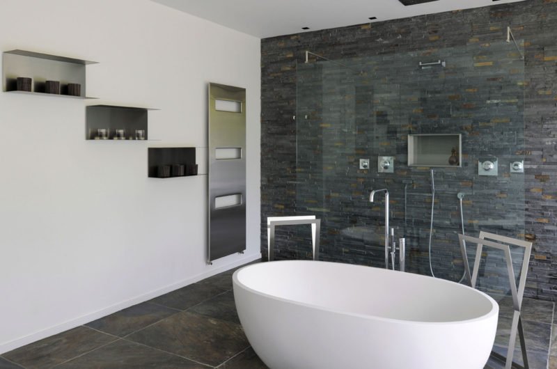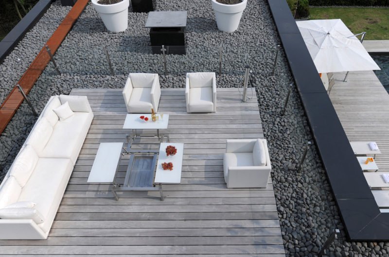 The sleek architectural style of the house makes sense in the choice of materials with elegant lines.